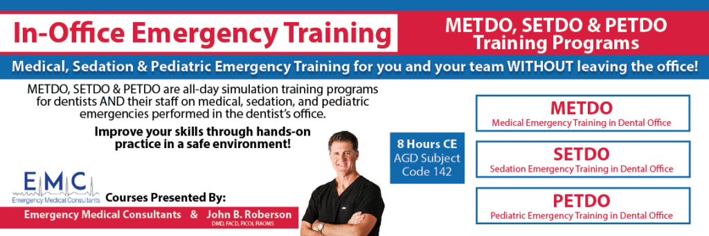 - For participating in METDO, SETDO, or PETDO, each person will receive 2 years of free Online Medical Emergency training from Goldman Dental Management.