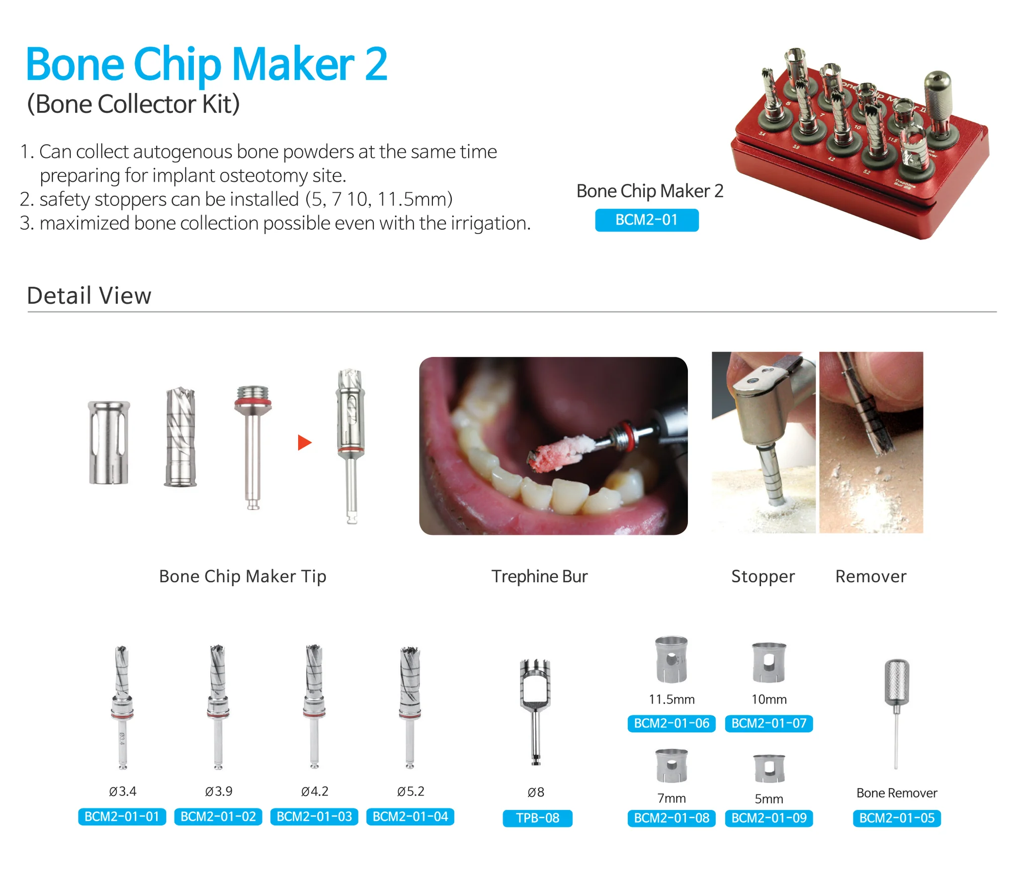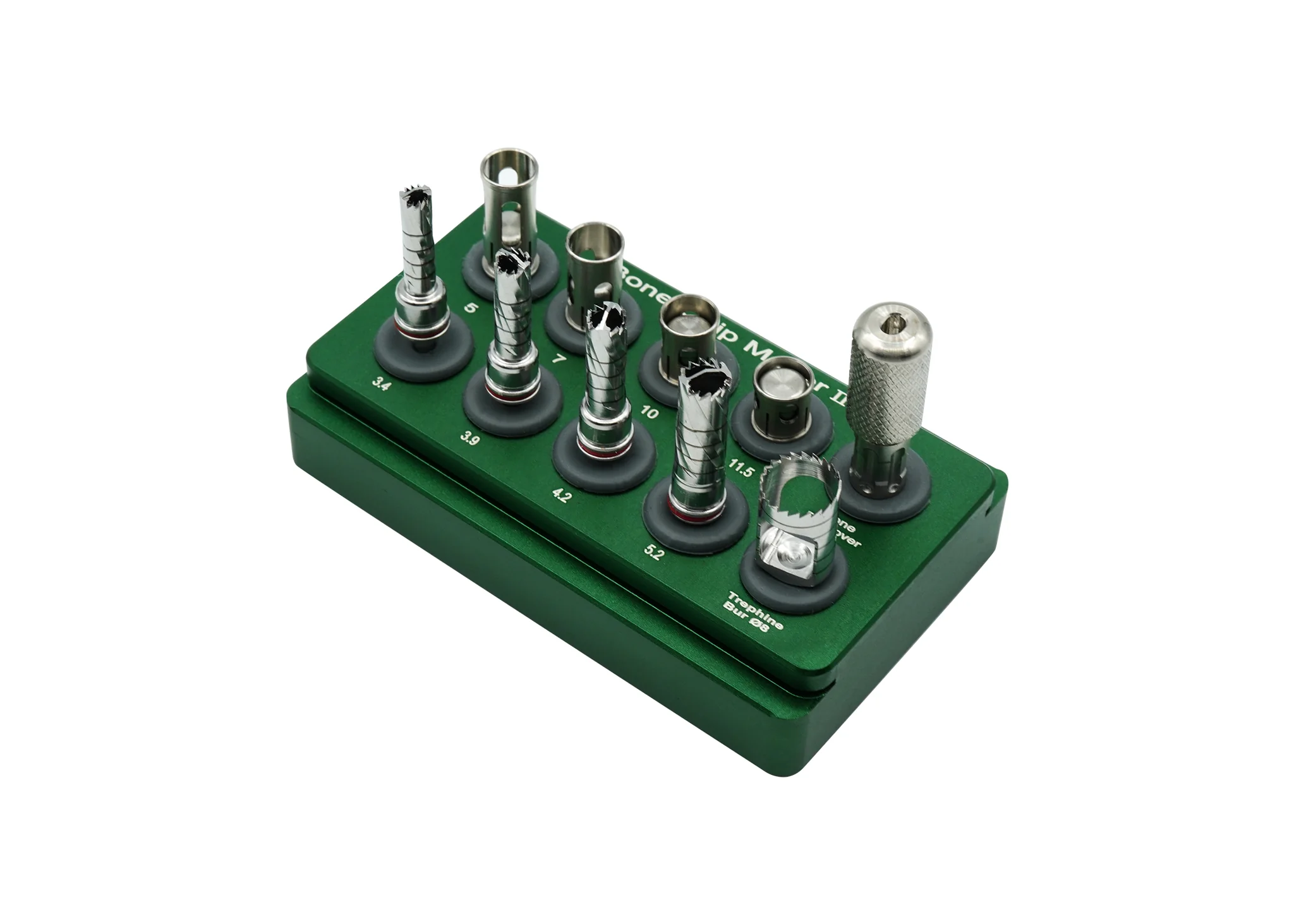 4 bone harvesting trephines (3.4, 3.9, 4.2, 5.2mm)