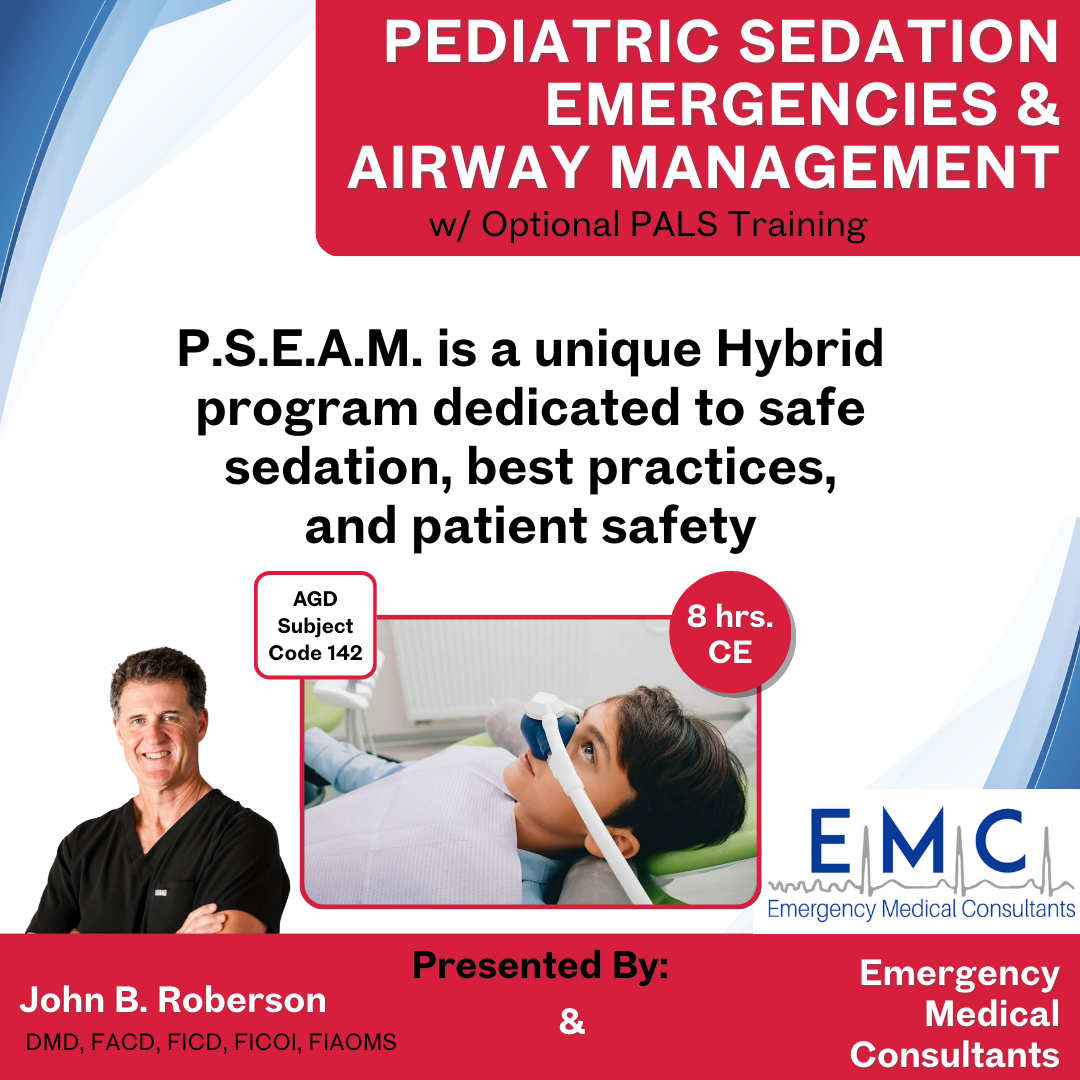 Pediatric Sedation Emergencies & Airway Management Training program is a unique Hybrid program dedicated to the dentist/specialist and their team that does any form of sedation involving pediatric patients. Safe Sedation Best Practices and Patient Safety are our top priorities! No One Should Die in a Dental Office! PSEAM consists of Three parts: