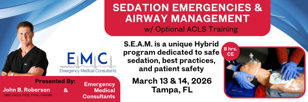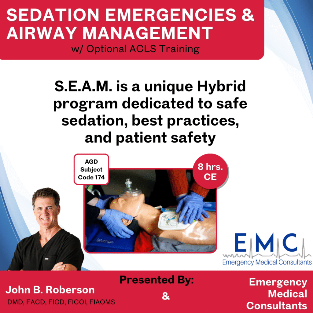 Sedation Emergencies & Airway Management Training program is a unique Hybrid program dedicated to the dentist/specialist and their team that does any form of sedation. Safe Sedation, Best Practices and Patient Safety are our top priorities!