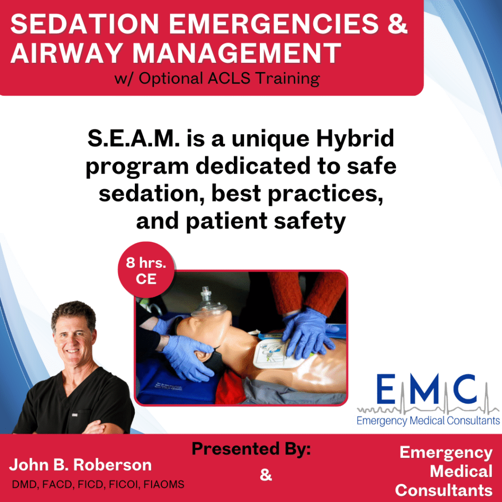 SEAM is a two-year program for the dentist AND their staff! Team training is the key to handling a sedation/medical emergency. No one should die in a dental office!